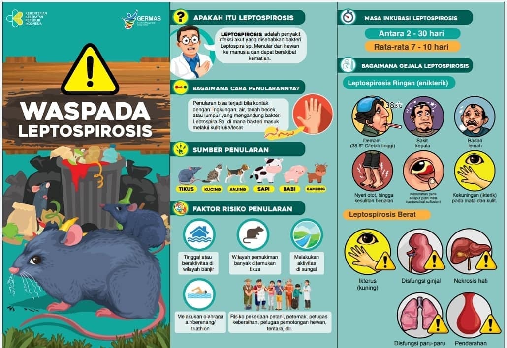Dengan mengetahui berbagai hal di atas, diharapkan masyarakat dapat bersiap dan berhati-hati terhadap penyakit penyerta banjir, seperti Leptospirosis.