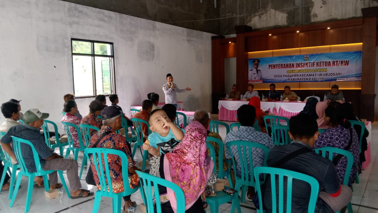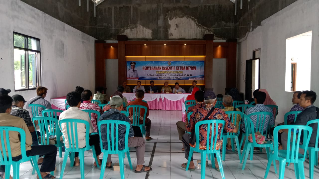 Pertemuan di Balai Desa Pagutan dalam rangka penyerahan insentif ketua RT/RW Desa Pagutan telah dilaksanakan dengan lancar dan kondusif. Kegiatan tersebut dihadiri oleh semua Perangkat Desa, Ketua RT/RW, Camat Arjosari beserta jajarannya serta perwakilan dari Dinas Perpustakaan Kabupaten Pacitan. Penyerahan insentif ini sebagai bentuk penghargaan dari Pemerintah Daerah dan diharapkan dapat memberikan manfaat bagi yang bersangkutan.